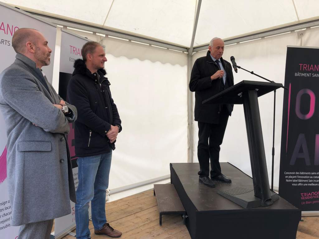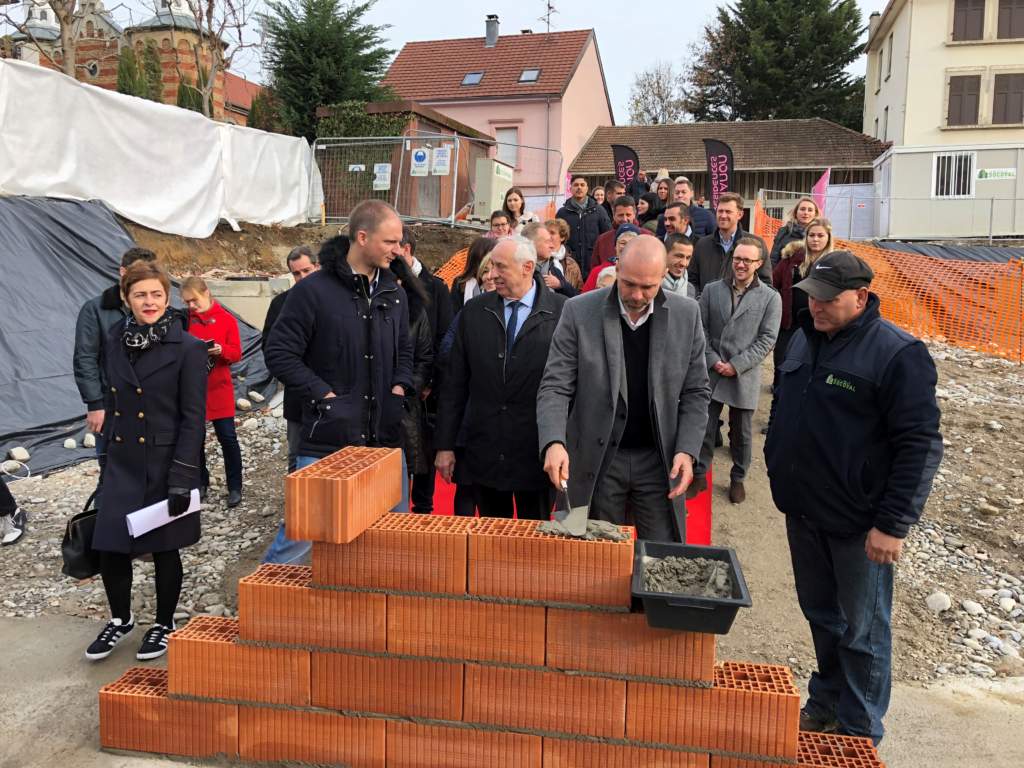 Ce mercredi 28 novembre, Cédric Simonin, PDG de Trianon Résidences, Jean-Marie Zoellé, Maire de Saint-Louis et Damien Cordier, drlw architectes, ont conjointement posé la première pierre d’un programme immobilier inédit en Alsace. Réalisée par le cabinet d’architecte DRWL, la future résidence Heart Déco à Saint-Louis comptera 51 logements et un espace de bureaux. Elle figure parmi les toutes premières résidences en France, et la première en Alsace, à être dotée d’une façade aux propriétés dépolluantes, autonettoyantes et bactéricides, capable d’absorber l’équivalent des rejets en CO² de 20 voitures à l’année. Ce projet est rendu possible grâce une démarche commune menée en collaboration avec la ville de Saint-Louis.